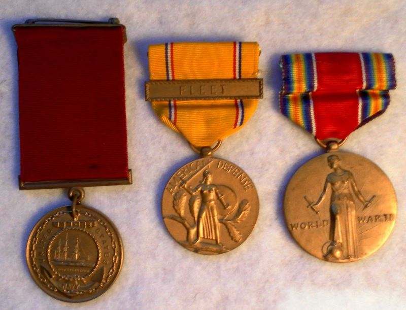 KASTAUFFER Posted December 6, 2013 Author #41 Posted December 6, 2013 GCM + Purple Heart group to a sailor who was WIA 12/7/41 on the USS California . His GCM was recovered from the ship and mailed to him in March 1942. That is why the planchet is stained black. I added the ribbon.