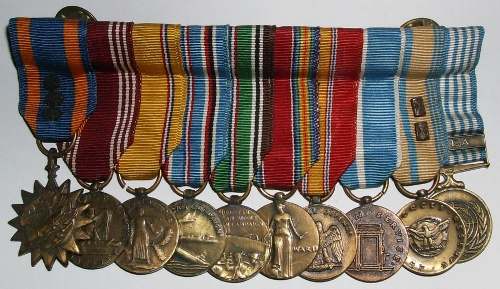 KurtA Posted February 10, 2013 #136 Posted February 10, 2013 My first post and first miniature medal bar. I aquired it several years ago in Washington State. Unknown recipiant. One of the larger ones I've ever seen. Hard to find WW1 bars these days. Hope you enjoy. Great bar! Probably worn by an Army Reserve Colonel. (Total guess on that.) To begin to even think about IDing him, you'd need to know what state he was from to have a remote chance. However, I don't see any state medals on there. In any case, that is a really nice group of miniatures.