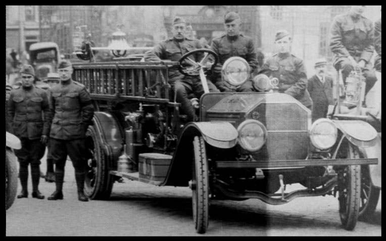 world war I nerd Posted June 1, 2014 Author #49 Posted June 1, 2014 AEF Fire Marshal Brassard After America declared war on Imperial Germany, the QTMC soon realized the great danger from fire in the hundreds of wooden buildings that has sprung up all across the nation to house the millions of arriving volunteers, recruits and conscripts. Provisions for camp fire departments were made and fire stations were erected in training camps, troop staging areas, warehouse storage facilities and at Army hospitals. Camp fire marshals, officers, NCOs and soldiers with experience in big city fire departments were culled from the officer corps and the arriving recruits to help fill the ranks. Overseas, the AEF created similar fire fighting outfits to protect the myriad of installations that were constructed by the U.S. Army Corps of Engineers from fire. Photo No. 96: The photo on the left depicts the Fire Marshal of Brest and what one would assume to be his driver. Note that both men are wearing a brassard composed of two colors on the left arm. It’s possible that this brassard whether it was of AEF or French manufacture, might represent the office of the Fire Marshal and his staff. The close up of the two enlisted men from the following photo (both of whom were also members of the Brest Fire Brigade) are both wearing a dark colored brassard. This brassard could be the symbol of an AEF Fire Company or perhaps a French Fire Brigade. Does any forum member know anything about U.S. Army or AEF firefighting insignia from WW I?