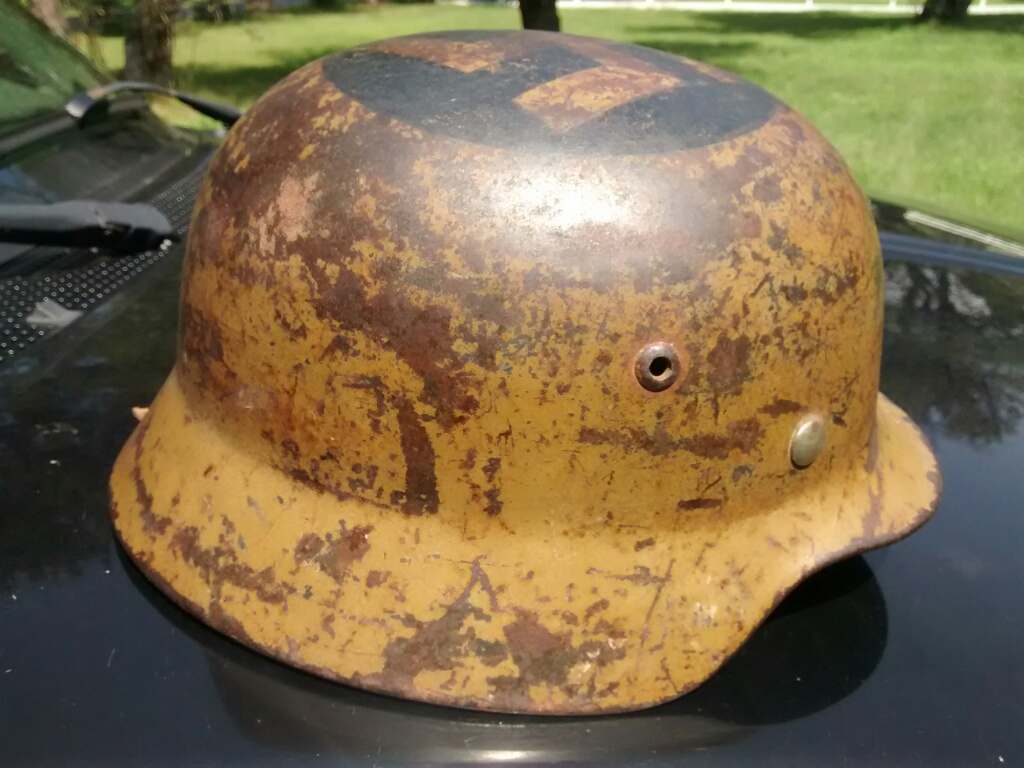BILL THE PATCH Posted July 29, 2016 #1 Posted July 29, 2016 I shared this helmet in another post with the veteran himself. His name is Nevin Gillmore. My Friend has to sell his house to move closer to his daughters. His eye site is going, plus other health issues. His wife of 60 plus years is with him so that's good. He has lived in the same house that he built after ww2. It's very sad to see this. He's actually going to a assisted living home, which i know is for the best. He deserves it. Well he called me up last night and asked if I could come over, so I did this is what he gave me. I showed it before but here are better pictures of it. I wonder if the german who took the bullet in helmet got hurt.i imagine he had a headache.