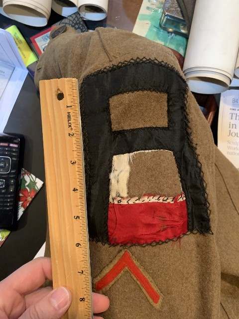 repbrock Posted January 11, 2019 #161 Posted January 11, 2019 This uniform belonged to PFC Frank L. Maharan of the 55th Artillery CAC, Battery C. Largest 1st Army Artillery Patch I have ever seen. Completely made of silk. Unforunately the white portion did not last. The black "A" portion is sewn on with a nice cross stitch. Measures 6 inches by 4.5 inches.