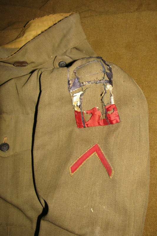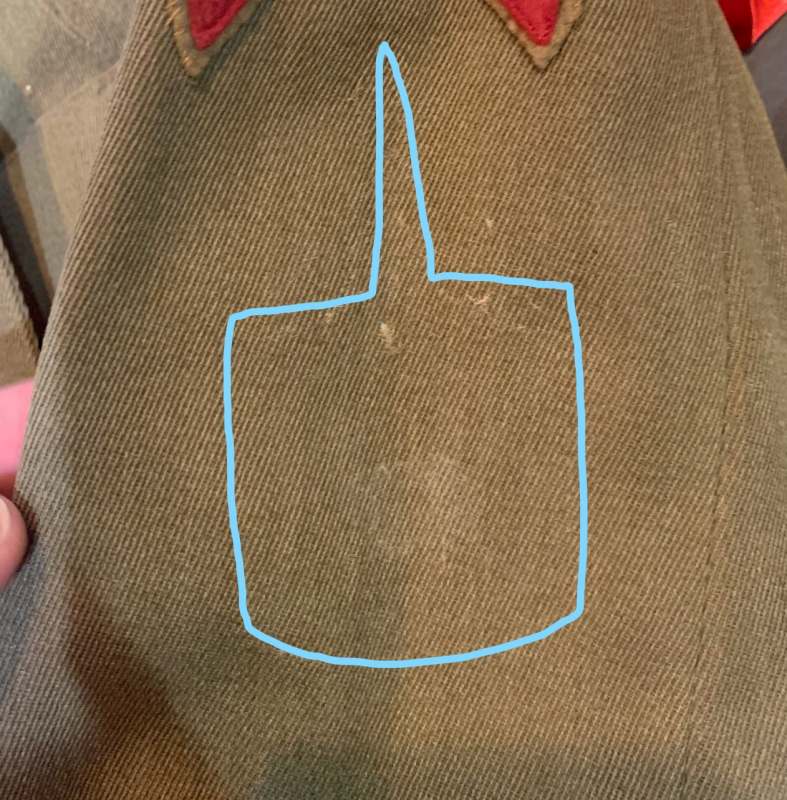 repbrock Posted August 27, 2020 #182 Posted August 27, 2020 Hello all, Recently I was looking through some of my 1st Army variations. Here is the uniform of Stephen Fagerli of the 68th Artillery CAC Battery A. Yes, the patch is in terrible shape but it's silk and only the 2nd one I have seen like this. What was interesting about my recently inspection is the outline of a patch that was sewn on to the uniform. I tried to draw the outline and of course thought it might be a rating patching but the spike is what I don't recognize. Thoughts???