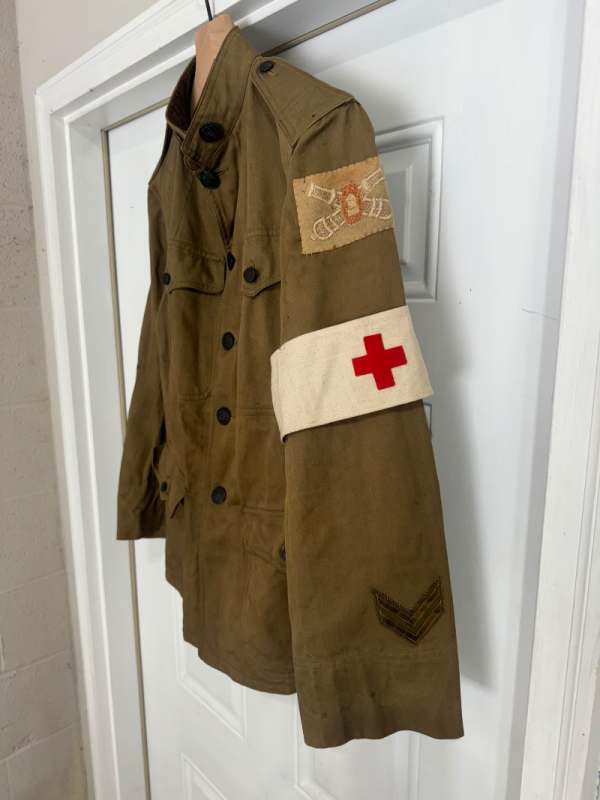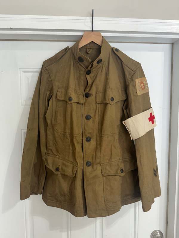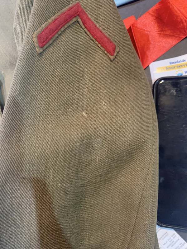 repbrock Posted December 31, 2020 #186 Posted December 31, 2020 Hello all, Well I bought this tunic on ebay. Great condition, albeit many of the buttons were removed. What is interesting is the ID vs. insignia. the name looks like "Prt. Chas Sorenson Co L 36 inf." But the insignia tells an entirely different story. Could be Coast Artillery/Field Artillery but not sure at this point. The coat came out of a Central Nova Scotia estate. No reason to think that patches are wrong or added later. The 1st Army patch does differ from the cross stitch on the other patches but looks period, as fading can be seen under patch in small section that is loose(my fault). Also, you would think that the buttons would have been sewn on as well if someone wanted to dress it up. Thoughts. Nice small cross section under service chevron.