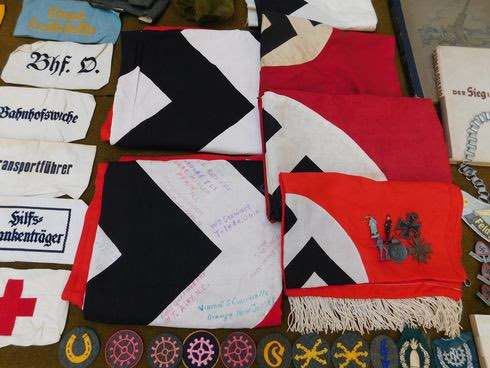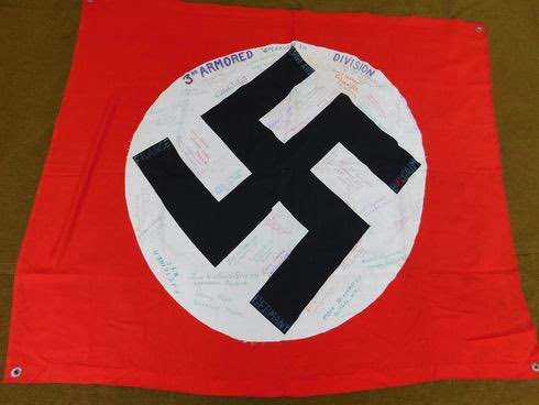 Fixbayonets! Posted August 15, 2021 Author #4 Posted August 15, 2021 5 different NSDAP flags & banners along with one factory unused flag center. The flag in the bottom left was signed by his unit.