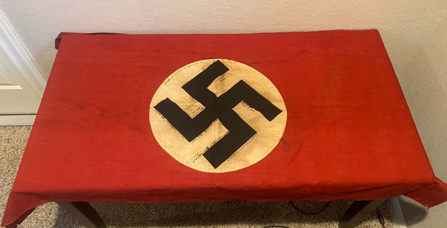 Deuce Posted February 1, 2023 #1 Posted February 1, 2023 A few weeks ago I was browsing a local gun show when I saw a table selling militaria. The display had the typical helmets, photos, bayonets, etc. I saw a crimson flag folded on the edge of the table and knew it was a wartime era Nazi flag. I struck up a conversation with the collections owner to discuss our interests. After speaking for about 30-45 minutes, I brought up the flag and asked if he had ever seen any signed by American veterans. The only ones with veteran signatures that I had seen previously were in museums. Funny enough, the flag had veteran signatures and had been signed by nine Americans prior to being brought home at the end of the war. It listed their first and last names (sometimes middle initial) and their hometowns. Other than that information, the owner did not have any additional details. I ended up purchasing the flag and started digging into each of the names on the list. I used a combination of state and federal archives, ancestry, fold3, and online obituaries. I have had pretty good luck tracing down information on the veterans but have been unable to trace them to a specific unit at this point in time. The only other Nazi flags that are in my collection were brought back by a family member who served in the 8th Infantry Division. I typically stay away from them due to their perception but when I am able to tie their story into American veterans, I make an exception. I will reply to this thread individually with the information on each individual who signed the flag. My hope is that you all are able to help me break through the wall that I have ran into and conclude their story.
