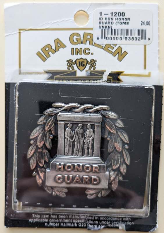 atb Posted December 24, 2024 #4 Posted December 24, 2024 Non-sterling versions of the Tomb Guard Badge were available for purchase in Army Clothing Sales Stores. I got this Ira Green example at the Ft. Myer, VA Clothing Sales Store in 2002. It is not marked on the reverse.