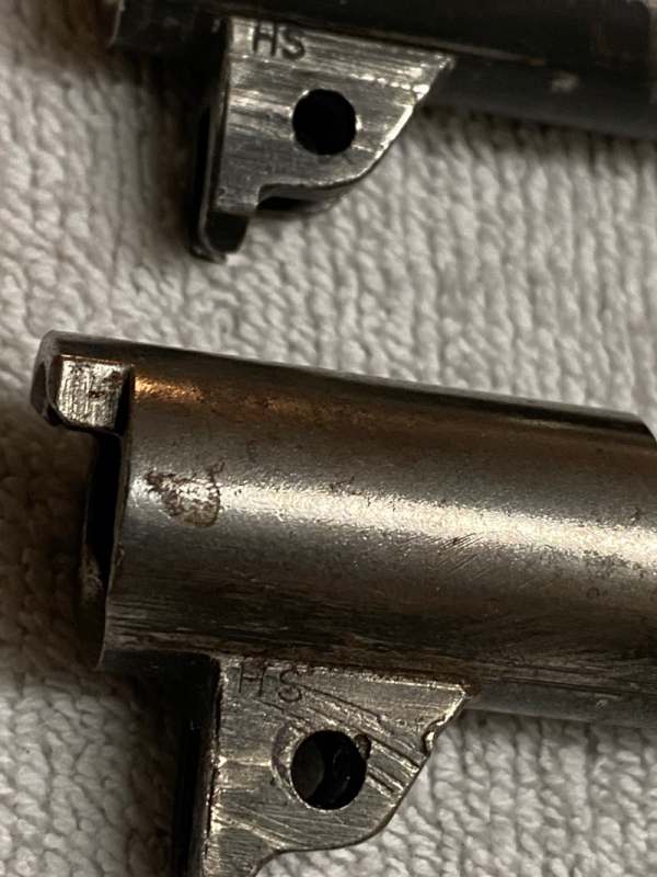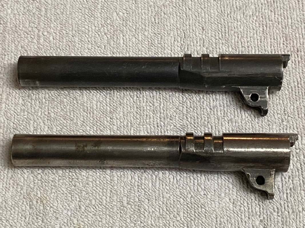 Blacksmith Posted June 10, 2025 #4 Posted June 10, 2025 Solely my opinion: I agree with @Rhscott on the slide. Poor thing. Slides are a tough sell in general, unless somebody is just going to make a mixmaster on a non-GI frame (Essex, etc). It’s next to impossible to match color, wear, etc. Hard to be sure, but it looks like some funny business around that rear sight. It has - what looks to be - a GI rump’y in it, but the dovetail looks milled out. This was common in the bullseye shooter craze that extended well into the 70s. If that slide was milled for a taller / adjustable rear, and somebody just sat that GI sight back in there, it’s basically hooped. On the High Standard barrels, the bottom one looks polished, so minimal value there. If the top barrel has a decent bore, that’s a good piece. The smalls: The checkered slide stop is nice, as is the short wide-spur hammer (that’s actually a Colt hammer). The other hammer looks like somebody shaved it down. A lot of the parts look to have come off of the ‘donor’ RR - like the mainspring housing. Later RRs used an 8-rib, where Ithaca used a 7-rib. Priced / sold individually, one maybe could get $400 + / - with some patience, as most guys will want just one part; usually the barrel. Maybe the MSH and Colt hammer too. Dunno. For the lot, take what you can get. I’ll end as I started: Just my opinion.