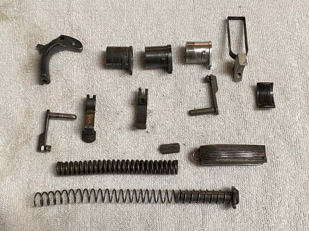 AirMechanic Posted June 10, 2025 #1 Posted June 10, 2025 I recently saw these M1911A1 parts at an estate sale and decided to take a chance. I believe they are from WWII, but I’m not sure if some of the parts are post-war or possibly aftermarket as well. Firearms are out of my area of expertise, so I was hoping that someone could give me a ballpark value for the whole group. Any help is appreciated!