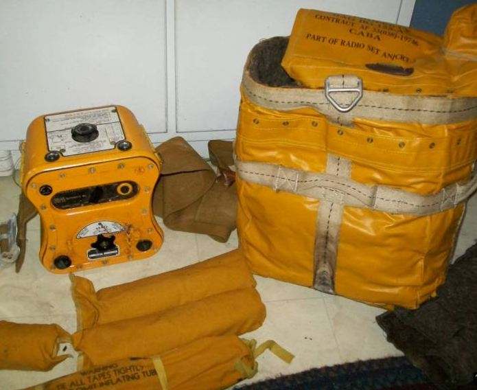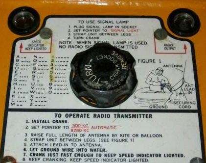Bob Hudson Posted June 29, 2009 Author Share #2 Posted June 29, 2009 The shape of these radios allows them to be held by the legs as the hand crank is turned. You'll notice in this photo the proper attire for using one of these in a life raft. The 800 foot long antenna is held aloft by a balloon. The crank stows away on the side: The front panel: The controls are quite simple and, again, it can send an SOS automatically: The long wire antenna is stored on a spool behind this door: Link to comment Share on other sites More sharing options...