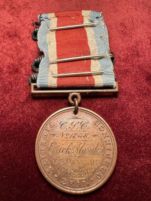 jmar Posted May 8, 2025 #298 Posted May 8, 2025 Hello all, I hope you're doing well. I've really enjoyed this thread over the years. So many fine and historic examples have been posted. I'd like to add for historical reference the following: William Hughlett CSC 1792 (2) Type I USN Good Conduct Medals Two Discharges Died at sea: 5 September 1879 near Apia, Samoa Served as Armorer on the USS Lackawanna Best wishes everyone! Joe